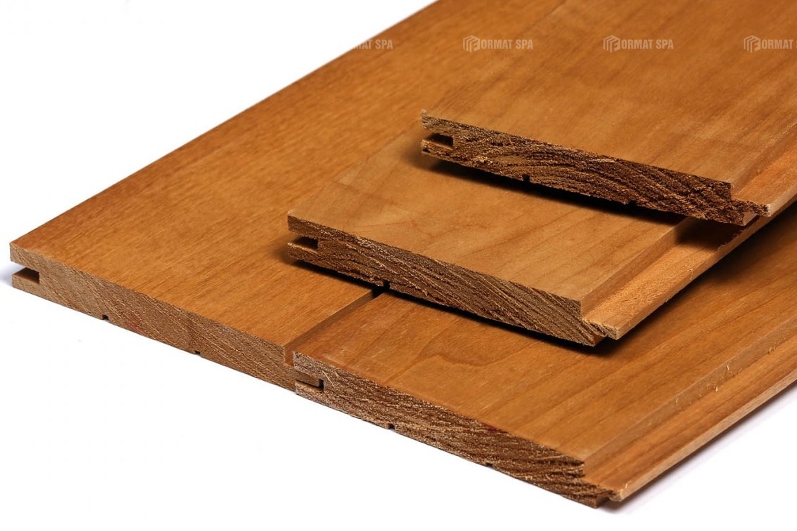 Bardzo popularny gatunek drewna w ostatnich latach, głównie ze względu na równomierne przebarwienie które w wersji termo wygląda zjawiskowo. Dodatkowym atutem jest szerokość deski która w połączeniu z designerskim profilem STS nadaje saunie nowoczesny wygląd. W ofercie posiadamy boazerię o szerokości 120mm jednak czasami dostępne są również inne szerokości.